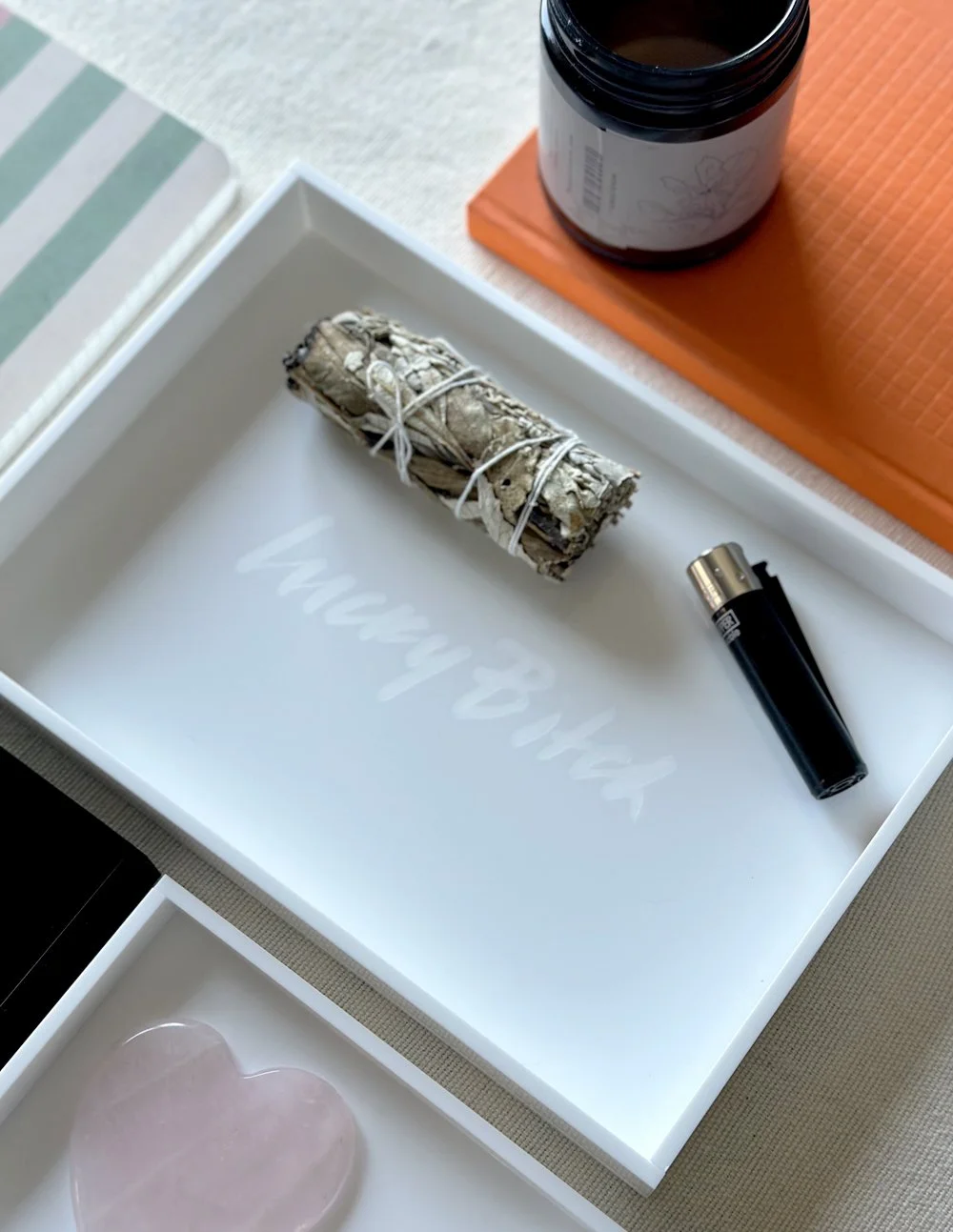 Our trays and coasters add a cheeky and chic moment to any room. Stack them with all your treasures.